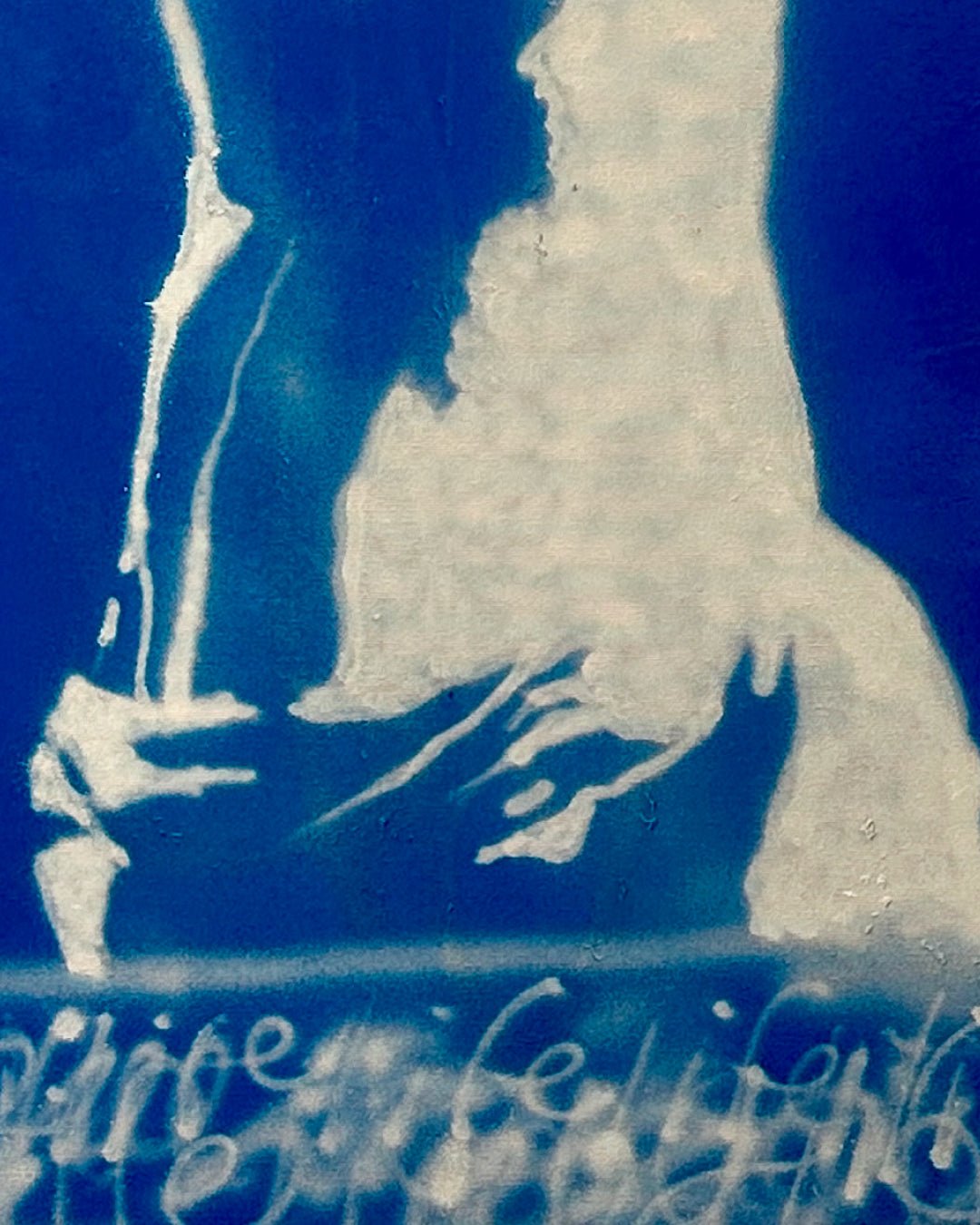 Through performances combining dance, painting, and music, I share inspiration and energy with the audience. Before a vast canvas, I confront fear and trembling, transforming them into the driving force of creation recording my trajectory through line and color.