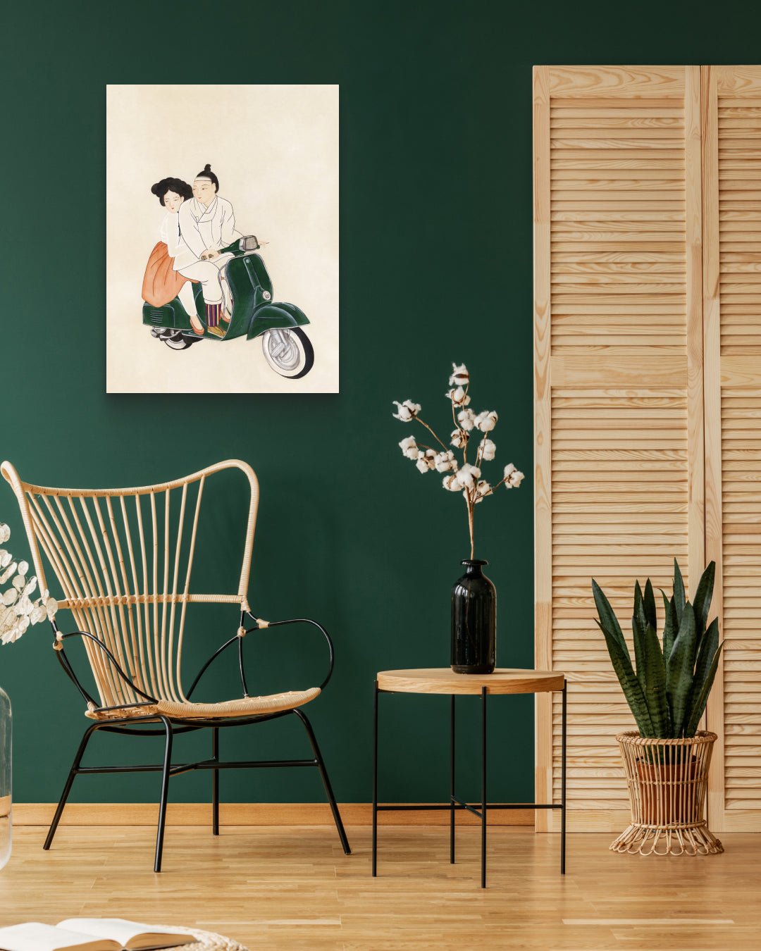 My work embodies the hope that all who view it will feel happiness and embrace life positively. At the same time, I address the issues of modern society, where people are often judged by appearances, by translating these themes into painting. Through humor and a playful interpretation, I aim to make these questions approachable, fostering both communication and empathy.