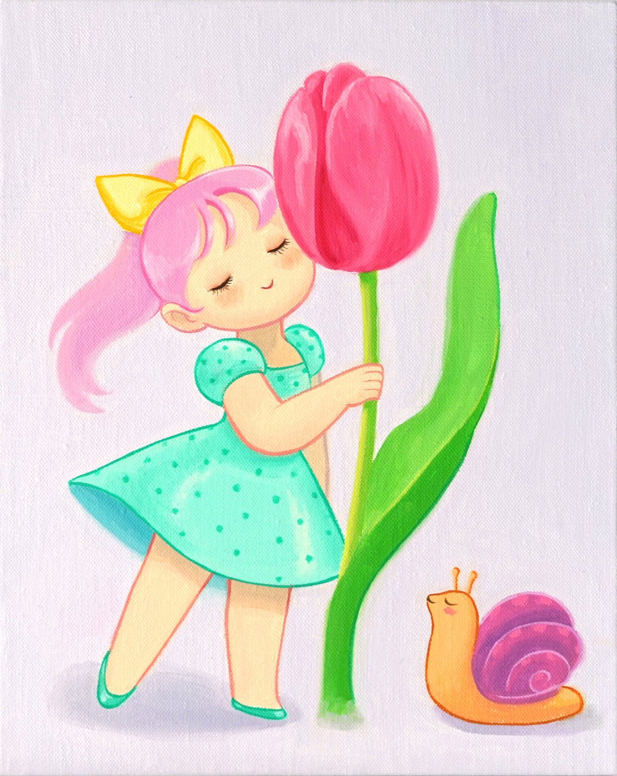 After years of working within commercial animation, Hyoji returned to Korea to begin a new chapter as a fine art artist, focusing fully on her own creative vision. Her artworks are deeply inspired by nature and fairy-tale imagination, where innocence and emotion coexist. The childlike characters that appear in her paintings are not merely cute figures, but emotional beings that embody the vitality and energy of life felt when encountering nature. Through these characters, she expresses feelings of comfort, warmth, and gentle joy. Hyoji’s work aims to offer healing and positive energy to viewers, inviting them to reconnect with innocence and rediscover quiet happiness within themselves.