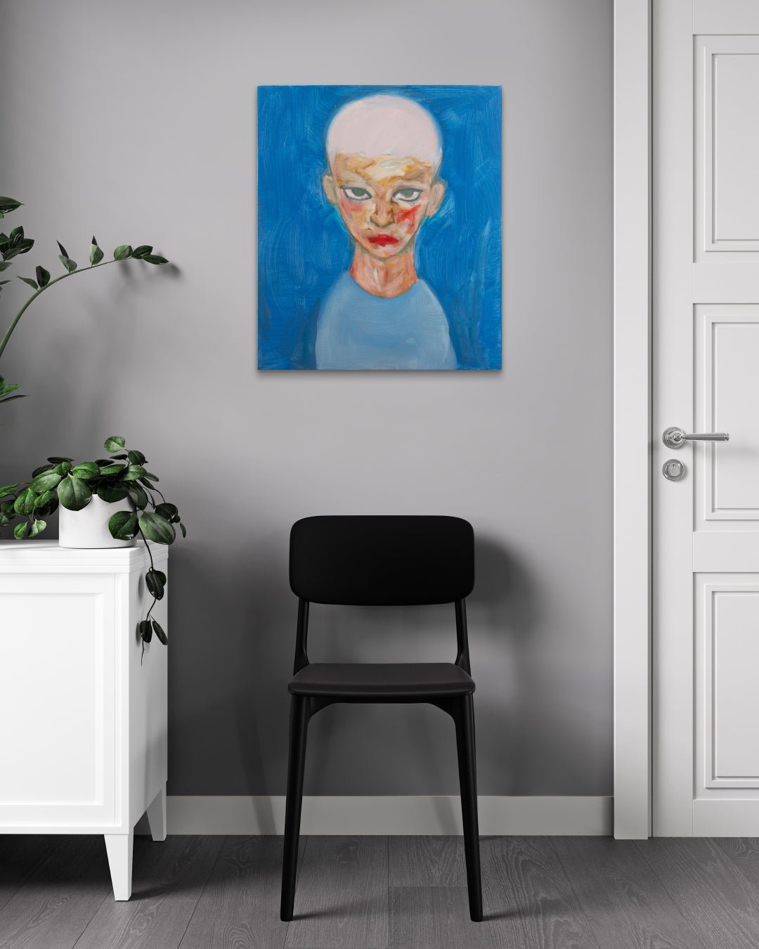 Jineui Heo is a Korean painter whose work centers on intimate figurative portraits that explore memory, perception, and emotional transition. Working primarily in oil on canvas and occasionally on wooden panels, she creates striking compositions defined by bold color contrasts and simplified backgrounds. Her figures, often depicted in moments of stillness, appear suspended between presence and disappearance, embodying quiet psychological tension.