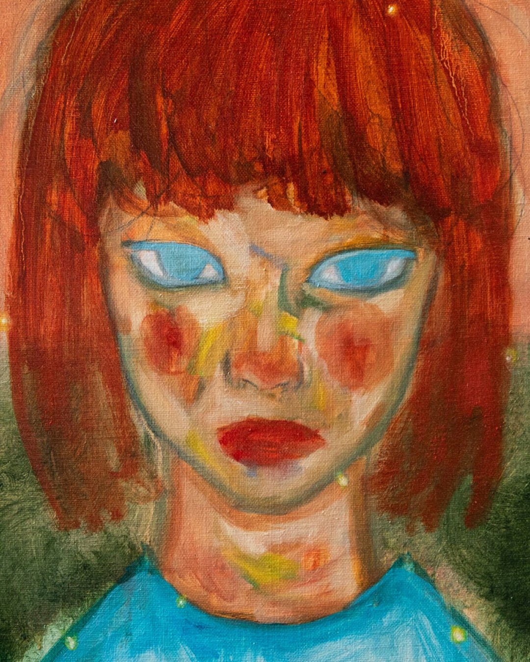 Jineui Heo is a Korean painter whose work centers on intimate figurative portraits that explore memory, perception, and emotional transition. Working primarily in oil on canvas and occasionally on wooden panels, she creates striking compositions defined by bold color contrasts and simplified backgrounds. Her figures, often depicted in moments of stillness, appear suspended between presence and disappearance, embodying quiet psychological tension.