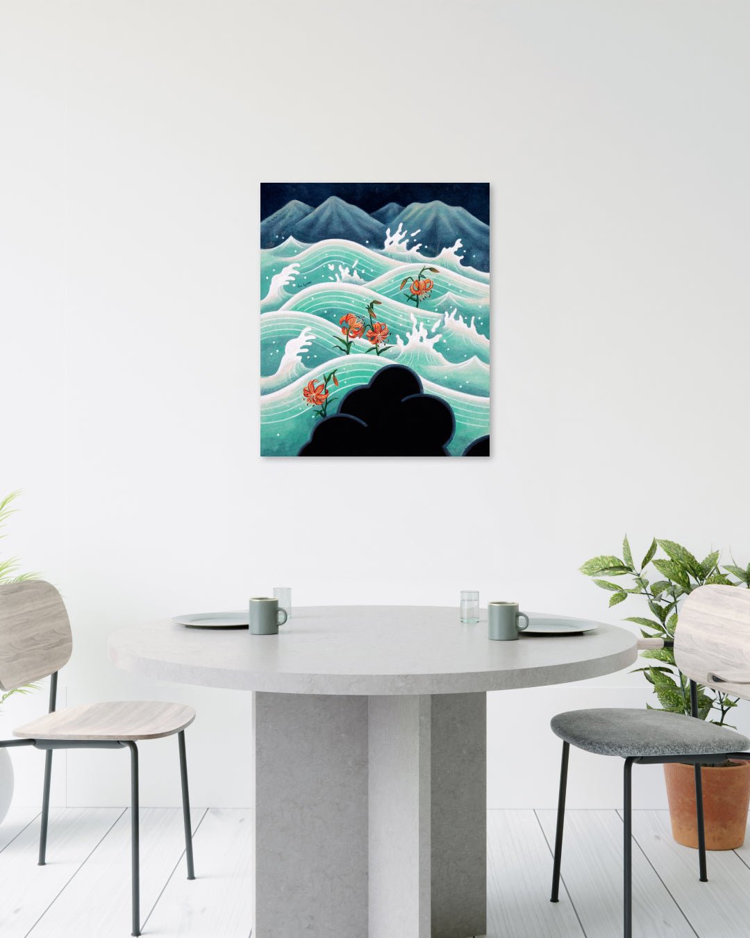 By juxtaposing peaceful ocean surfaces with subtle traces of disruption, my work reflects how instability can appear without warning, even in moments that seem safe or ordinary. The waves become metaphors for the emotional and social shocks that shape contemporary existence, rising and collapsing in continuous cycles.