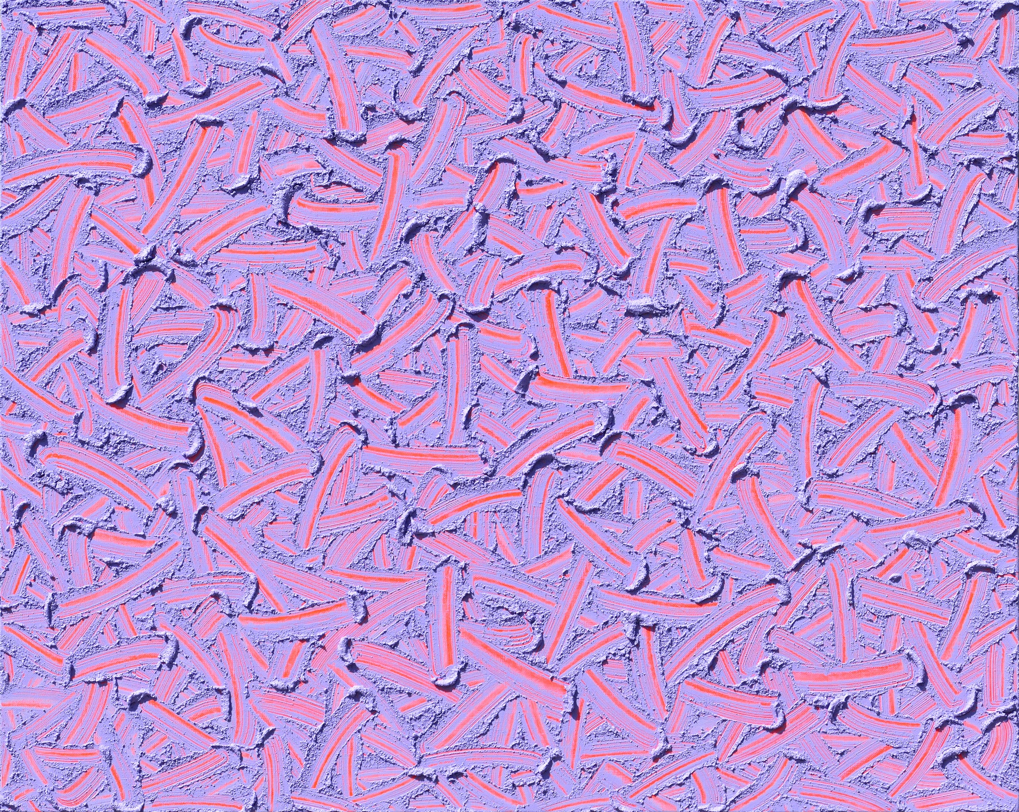 “The Flow of the Mind’s Eye”, a painting that embodies the dynamic and natural energy of brushstrokes born from chance, along with a heightened sense of tactility enhanced through objects. This work explores the themes of stroke (劃) and color (色) as central elements of expression.