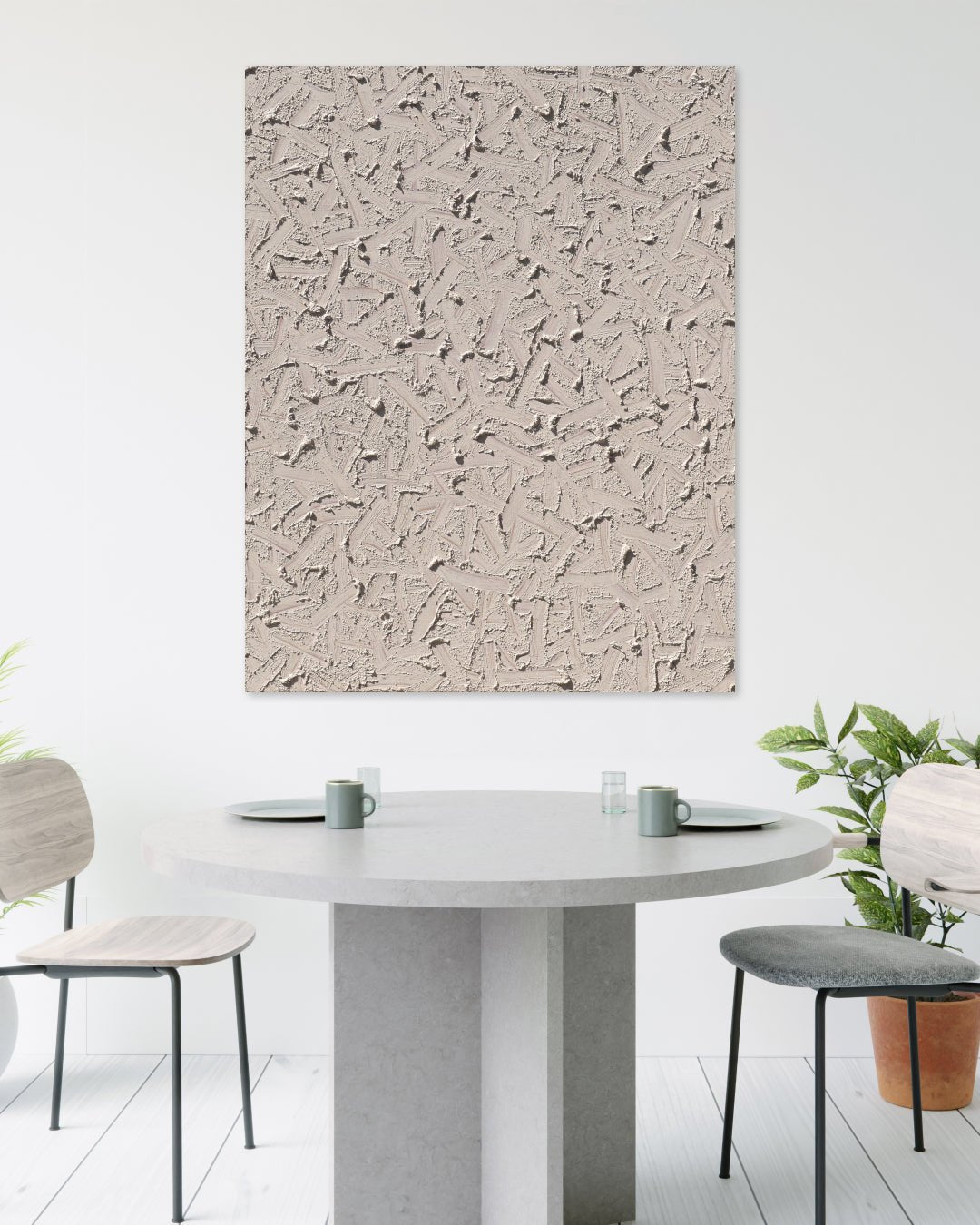 “The Flow of the Mind’s Eye” is a painting that captures the dynamic, instinctive energy of brushstrokes born from chance and movement. What begins as an unplanned gesture evolves into a visual rhythm—an organic flow shaped by intuition, speed, and the natural force of the artist’s hand. This spontaneous energy is amplified through the addition of object-based textures, enhancing the tactile presence of the work and allowing the surface to transform into a sculptural field.