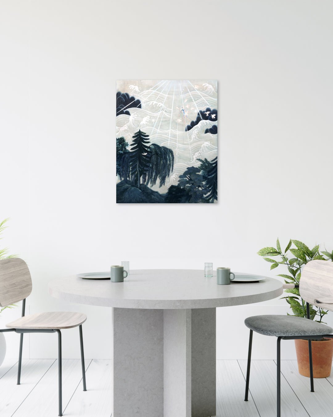 In my paintings, waves carry not only disaster but also possibility. They move, retreat, and return — like the cycles of human life. Through them, I reflect on how individuals endure uncertainty, rebuild after collapse, and continue forward. Quiet blues and pale spaces give the viewer room to breathe, while subtle details invite closer observation, revealing what initially goes unnoticed.